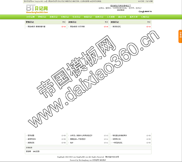第一步:FTP上传skin文件夹覆盖到网站根目录 第二步:在ECMS后台进入模板管理 > 模板组管理 > 导入模板。(选择e1323920741.temp文件) 第三步:系统设置 > 数据更新 > 更新数据库缓存;刷新首页、栏目页、内容页;更新动态页面。 第四步:新网站模板导入并转换完毕。 效果图如下: