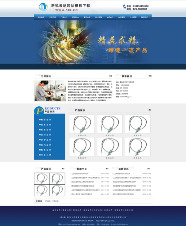 模板下载文件 有logo png格式文件 页面编码为:utf-8 需要gbk 可自行转换 1.首页模板 2.新闻列表模板 3.产品列表模板 4.公用单页模板 此模板可以用作 制作: 铝型材公司网站、钢铁型材网站、科技品公司网站等以及一些高科技类公司网站