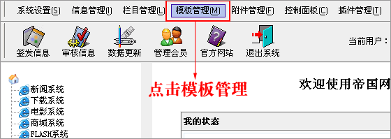 1、登陆后台,然后点击“模板管理”菜单。如下图: