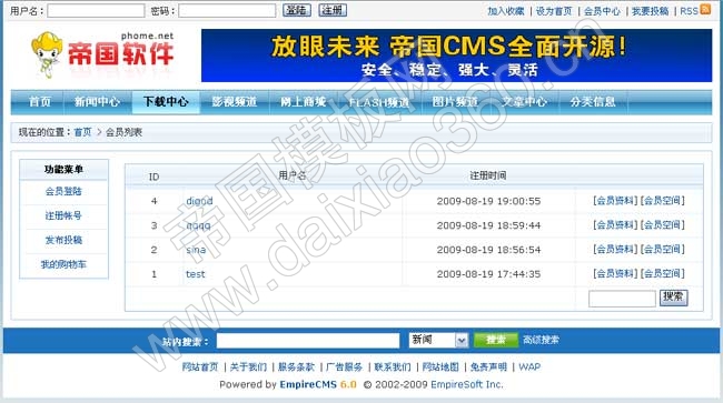 帝国CMS6.0的会员列表功能新增了多种会员列表样式设置。今天我们就专门来讲解6.0的会员列表多样式。