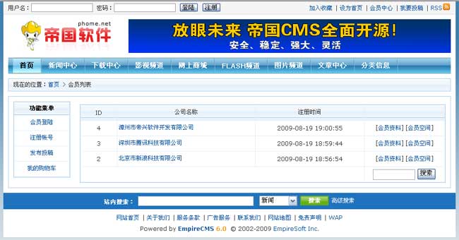 2、会员列表用tempid变量指定使用的列表模板:/e/member/list/?tempid=模板文件。