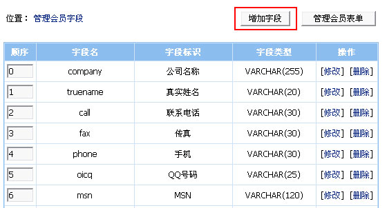 1、到“用户面板”->“管理会员字段”->点击“增加字段”按钮,如下图: