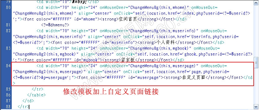 三、修改空间模板加上页面链接:“page.php?userid=&p=字段名”。