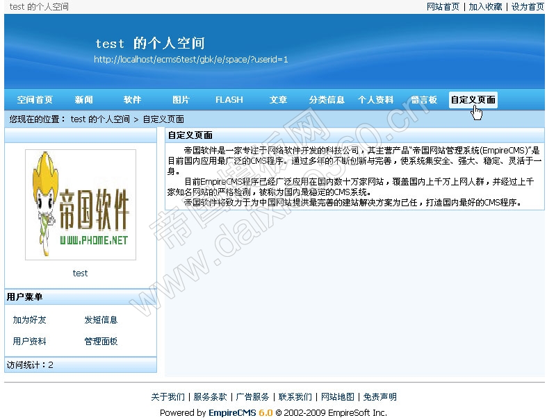 今天我们解密的是如何使用帝国CMS6.0新增的会员空间单页面功能。