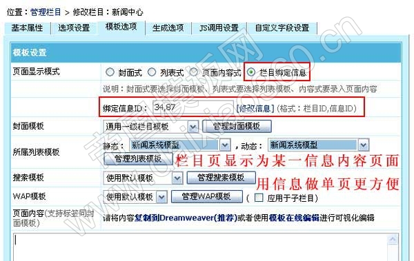 帝国CMS 6.6版新增栏目绑定信息功能,可以指定栏目的页面内容为绑定信息的页面内容。方便用发布信息做自定义页面的用户。