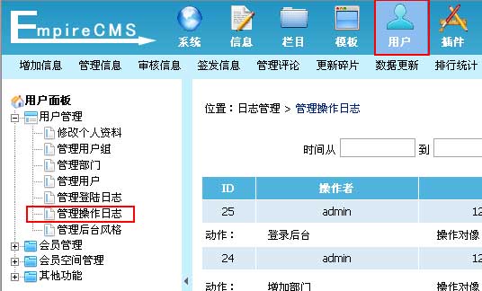 帝国cms网站管理系统操作日志管理帮助