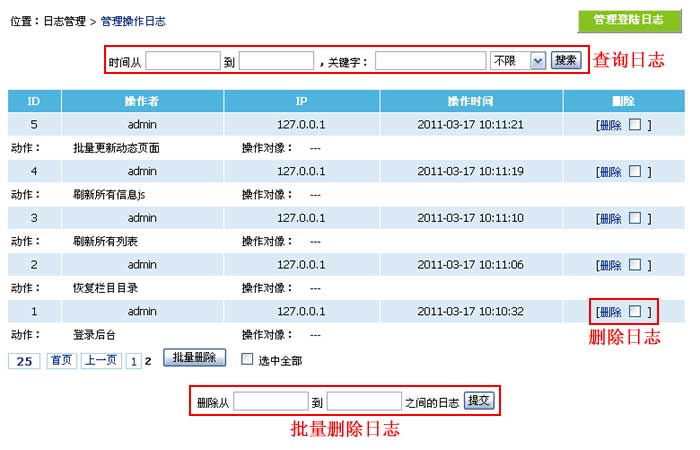 > 帝国cms网站管理系统操作日志管理帮助