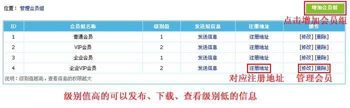会员组级别值:填数字,级别值越高权限越大。