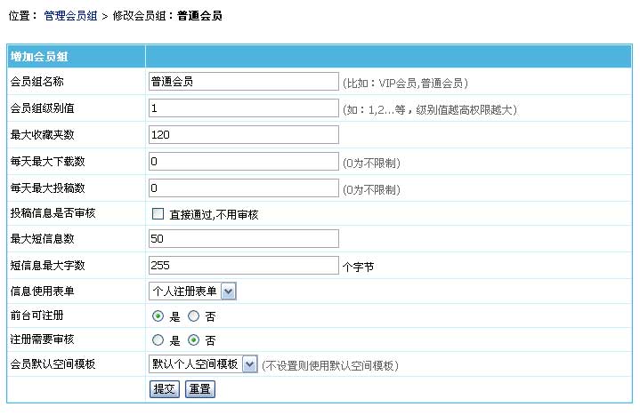 注册需要审核:选择往此会员组注册的会员是否要审核。