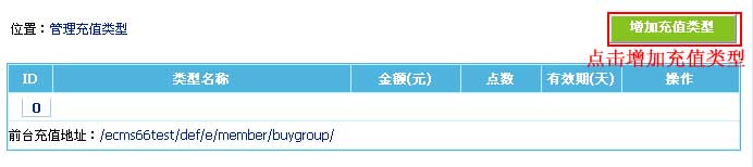 2、进入管理充值类型界面,点击“增加充值类型”按钮进入增加充值类型界面: