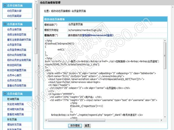 帝国CMS7.0动态页面模板支持后台直接修改,并且可分类分开管理,查找和修改相应模板更方便。 且此功能用户组采用独立权限,以及可自行设置是否开启在线修改动态模板功能。 上传以下图片: