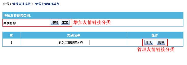对于友情链接较多的站点,后台可设置选择性的显示所属类别中的友情链接,方便管理。前台还可以按对应分类调用友情链接。