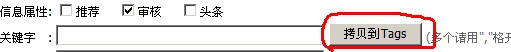 <input type="button" value="拷贝到Tags" onclick="copykeyword()"> <font color="#666666">(多个请用","格开)</font></td>