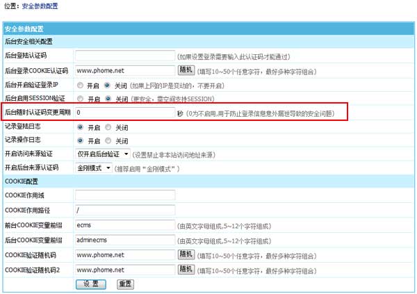 针对管理员电脑中毒或者服务器受ARP等攻击,可能导致当前管理员登录COOKIE等信息外泄与被获取导致安全问题情况。针对此类意外事件,帝国CMS7.2版本后台新增“随时认证码”验证,随时使登录验证信息过期,不断产生新的登录信息,使旧的登录信息失效,更有效防御因各类意外事件登录信息外泄,导致安全问题情况。