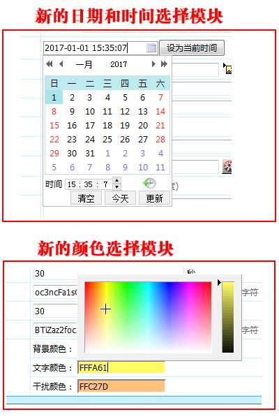由于老版本的日期和颜色选择模块不兼容非IE浏览器,所以帝国CMS7.5版本各页面采用全新的日期时间选择模块和颜色选择模块,兼容各主流浏览器,使用更方便、更实用。 上传以下图片: