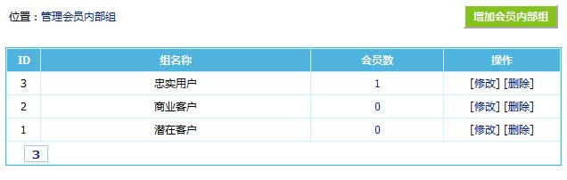 3、管理内部会员组页面直接能查看组下会员数量,点击数量可直接进入会员列表进行管理,方便。